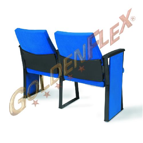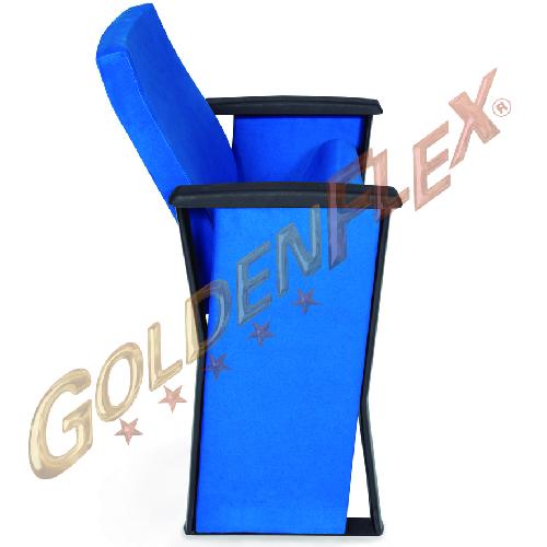 Fechamento das poltronas nas laterais (inicial e final) de cada fileira será até o piso do lado externo, através de painel em compensado multilaminado com espessura mínima de 10,5 mm, altura de 620 mm e comprimento de 270 mm, sendo este revestido com o mesmo padrão de revestimento utilizado no assento e encosto.